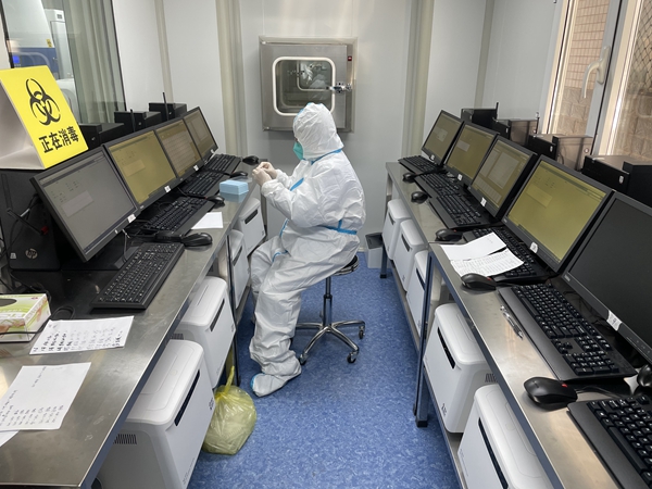 因为疫情原因已经打不到车了,好博体育支援医院的老师开着救护车专车来接我,在我看来那属实是极高的待遇。到医院后,便直奔方舱实验室。